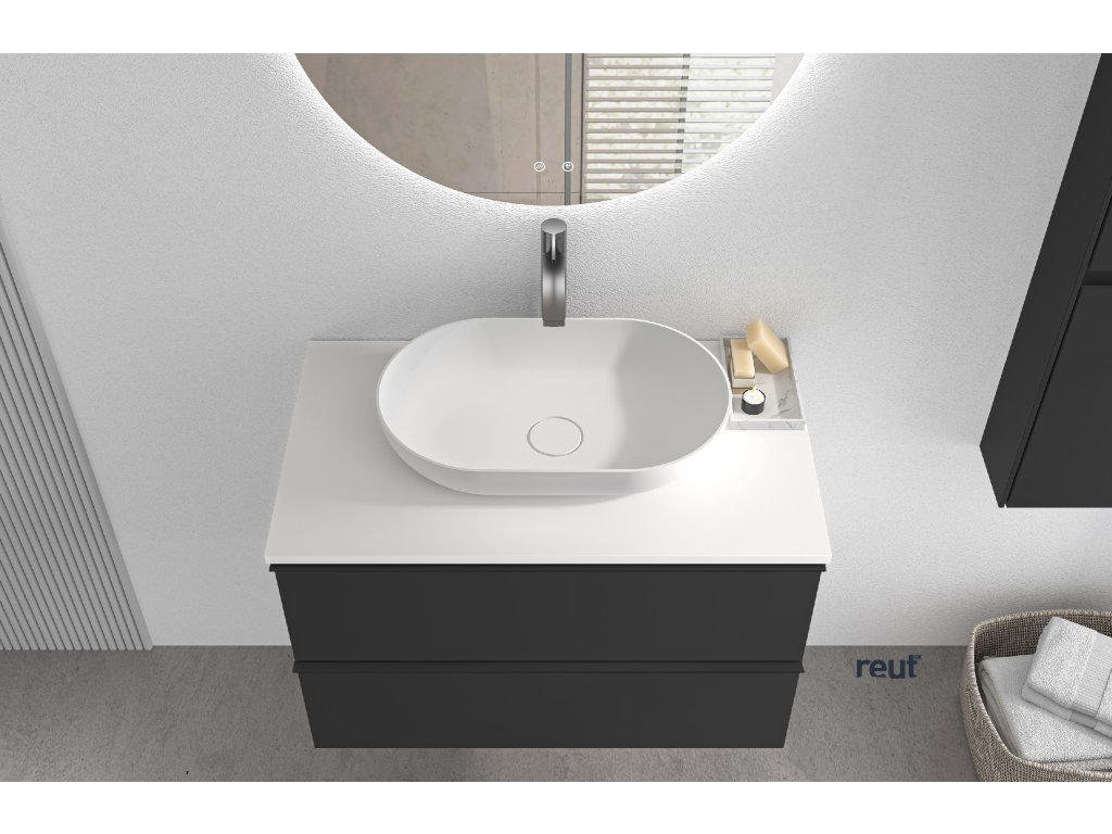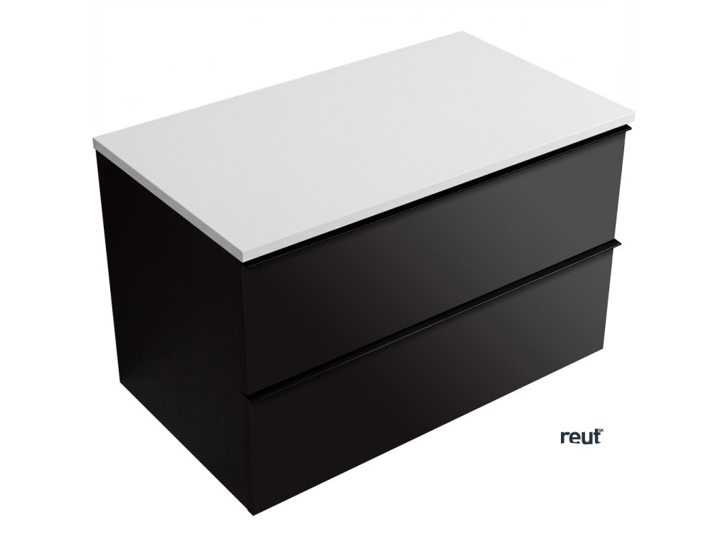 CERANO - Kúpeľňová skrinka pod umývadlo Velora s úchytkou/doskou z liateho mramoru Elanys - 12 mm - čierna matná, čierna úchytka - 79x53x46 cm CER-679430