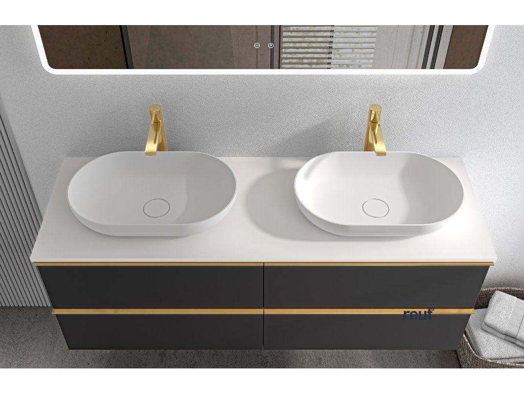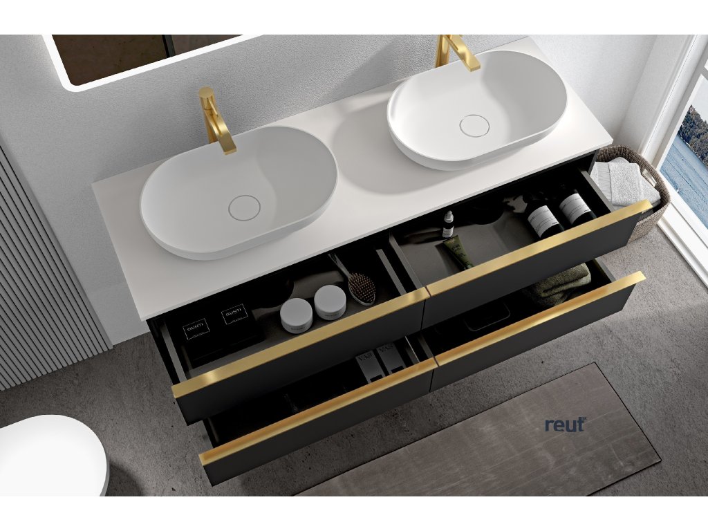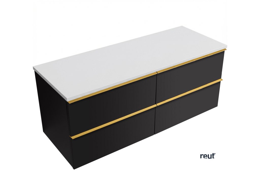 CERANO - Kúpeľňová skrinka pod umývadlo Velora s úchytkou/doskou z liateho mramoru Elanys - 12 mm - čierna matná, zlatá úchytka - 158x53x45,2 cm CER-679441