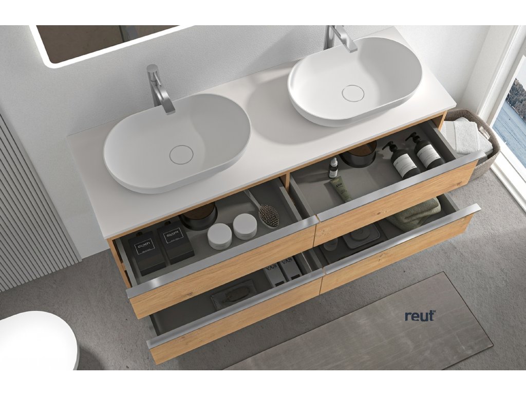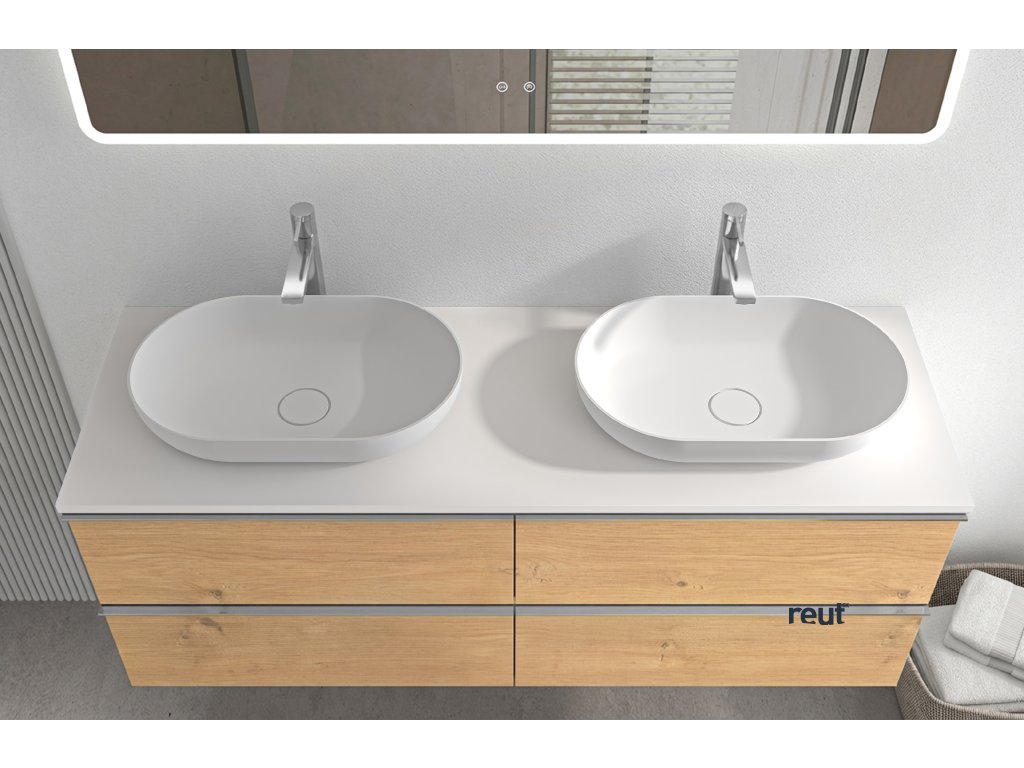 CERANO - Kúpeľňová skrinka pod umývadlo Velora s úchytkou/doskou z liateho mramoru Elanys - 12 mm - dub medový, chrómová úchytka - 119x53x45,2 cm CER-679453