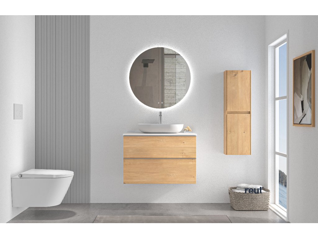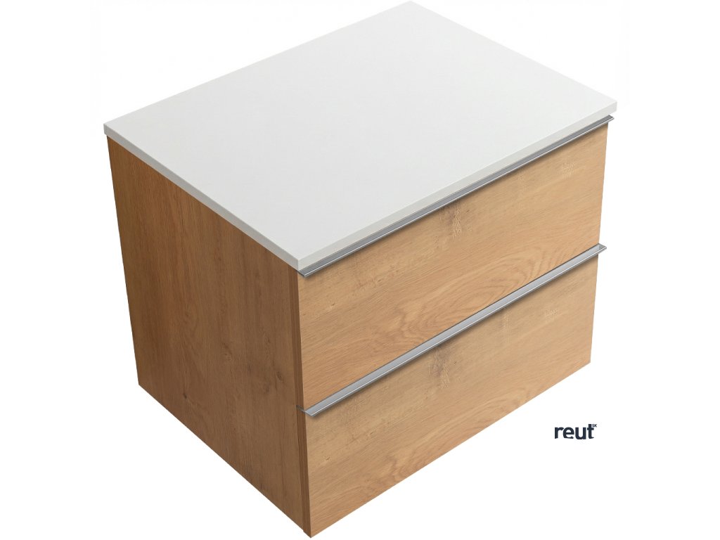 CERANO - Kúpeľňová skrinka pod umývadlo Velora s úchytkou/doskou z liateho mramoru Elanys - 12 mm - dub medový, chrómová úchytka - 59x53x46 cm CER-679456