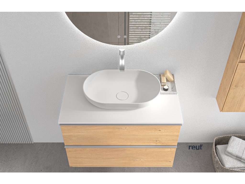CERANO - Kúpeľňová skrinka pod umývadlo Velora s úchytkou/doskou z liateho mramoru Elanys - 12 mm - dub medový, chrómová úchytka - 99x53x46 cm CER-679459
