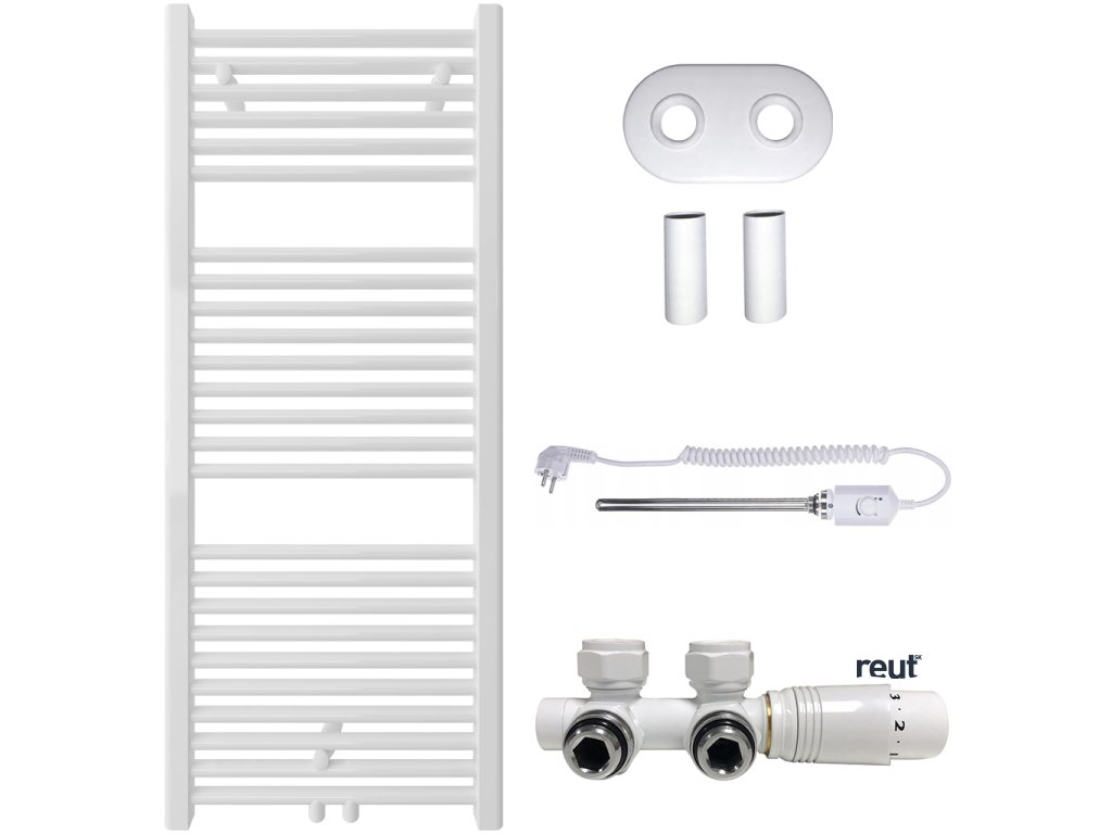 CERANO - Kúpeľňový radiátorový set Lincoln - kombinované vykurovanie, termo tyč - stredové pripojenie 50 mm - 366W - biela matná - 1200x500 mm CER-663370