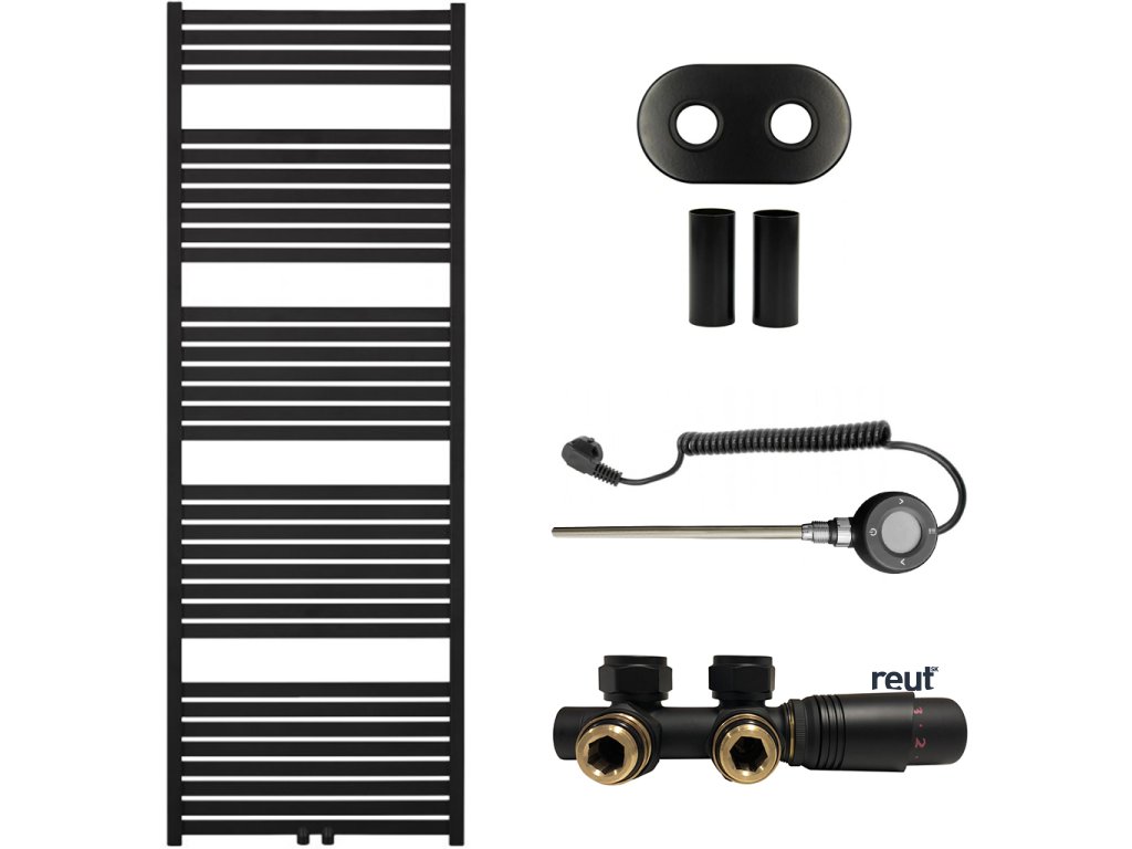 CERANO - Kúpeľňový radiátorový set Vincenzo - kombinované vykurovanie, wifi tyč - stredové pripojenie 50 mm - 800W - čierna matná - 1690x600 mm CER-663517