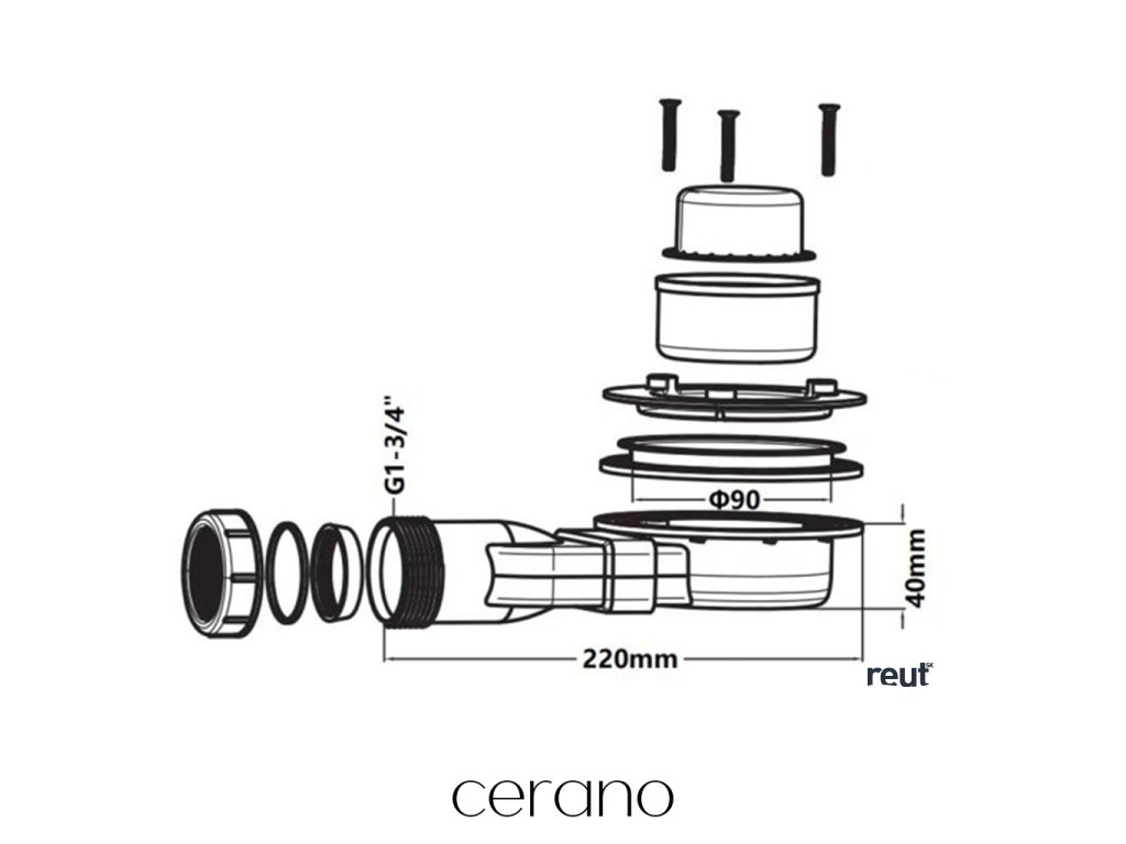 CERANO - Sifón sprchovej vaničky 90mm - Slim - DN40 - príruba biela CER-481435