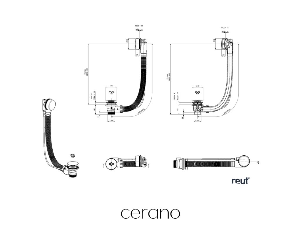 CERANO - Vaňová súprava ovládacia bovdenom 6/4“ - zátka 72mm - biela lesklá - 80 cm CER-676687