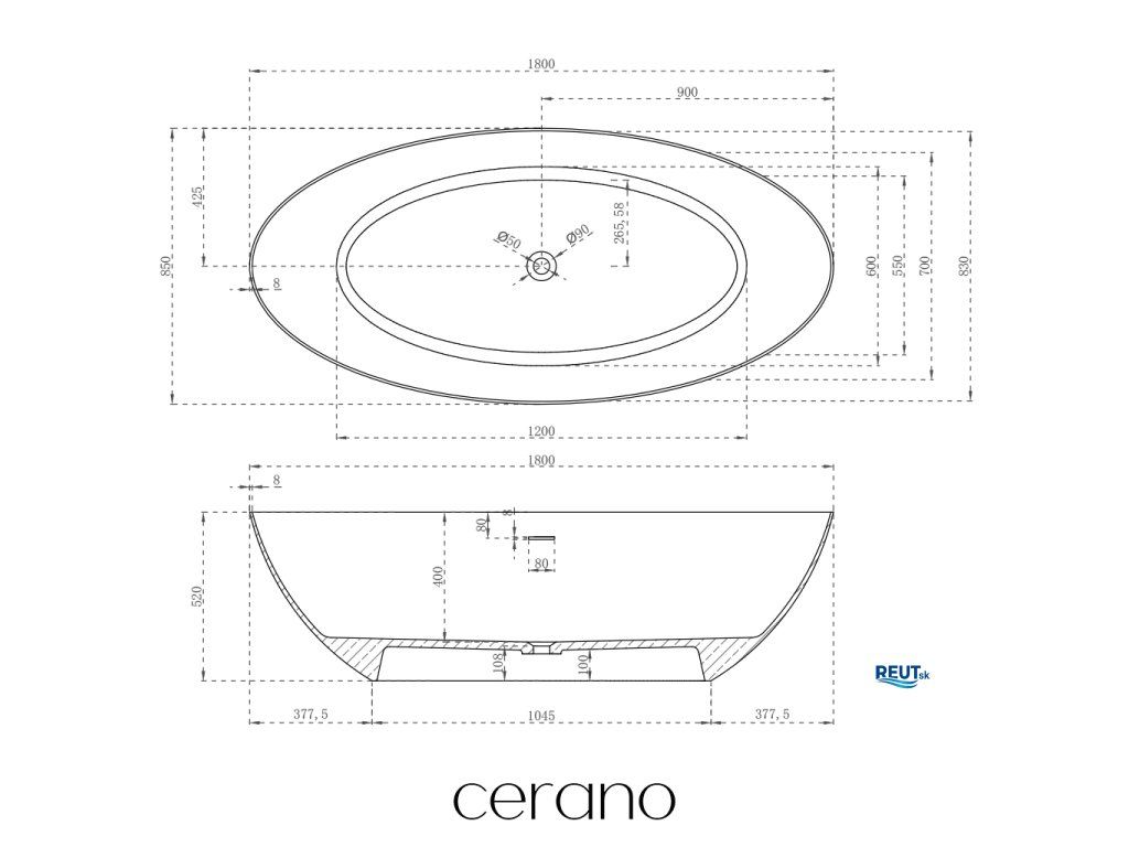CERANO - Voľne stojaca vaňa z liateho mramoru Emilia - biela matná - 180x85cm CER-417536
