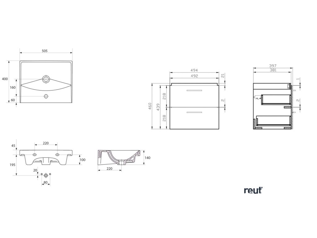 Cersanit Lara Skrinka s umývadlom, 46x49x40 cm, 2 zásuvky, orech S801-155-DSM