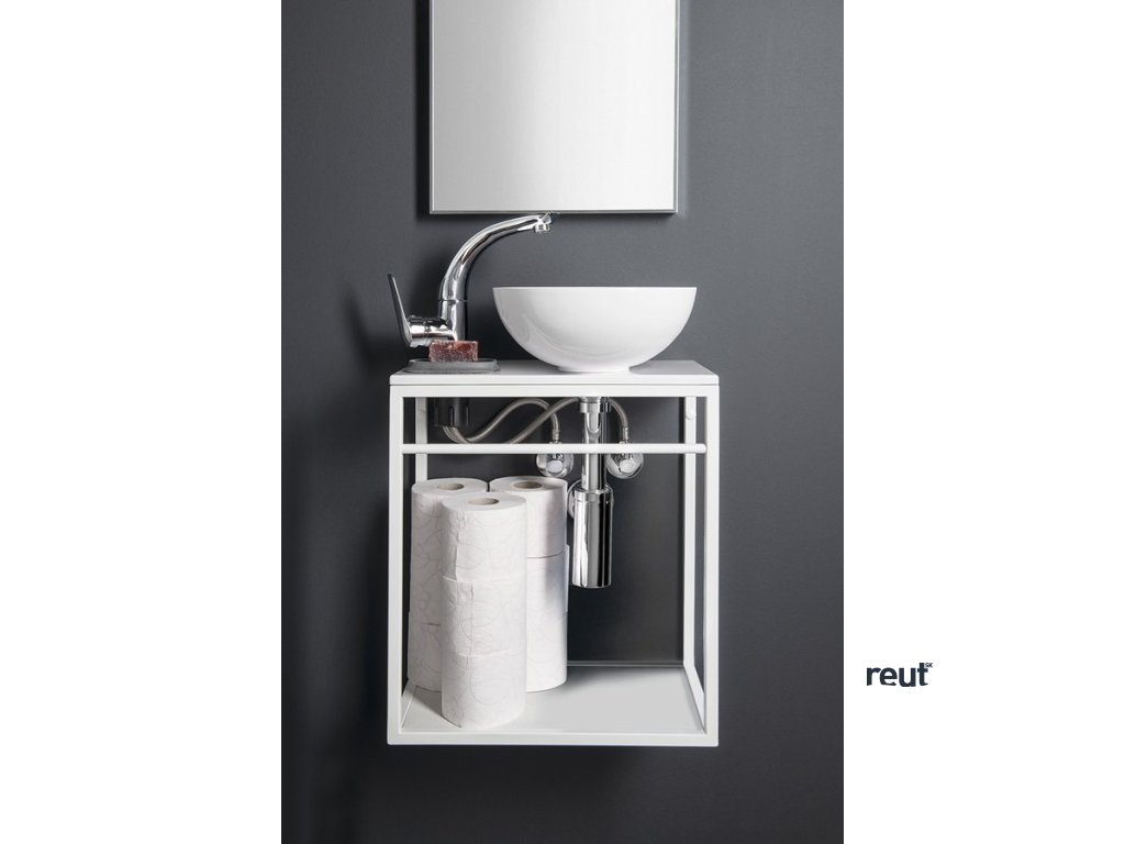 Závesná konštrukcia s poličkou a držiakom uteráka pod umývadlo