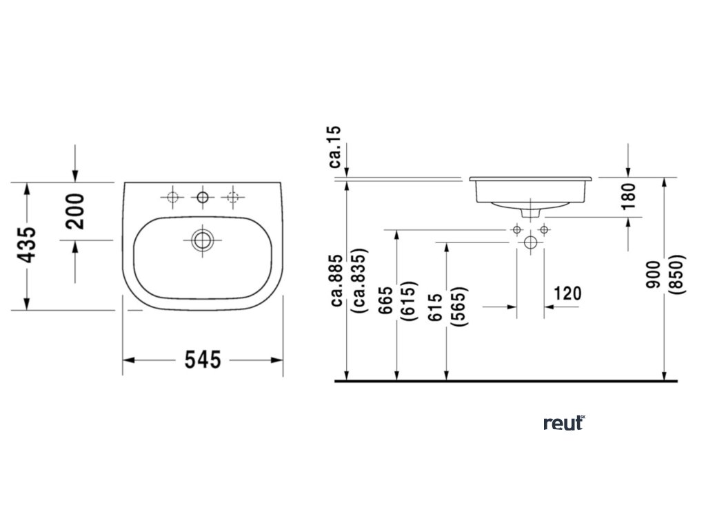 Duravit D-Code Umývadlo zápustné, 55x44 cm, s prepadom, s otvorom na batériu, biela 0337540000