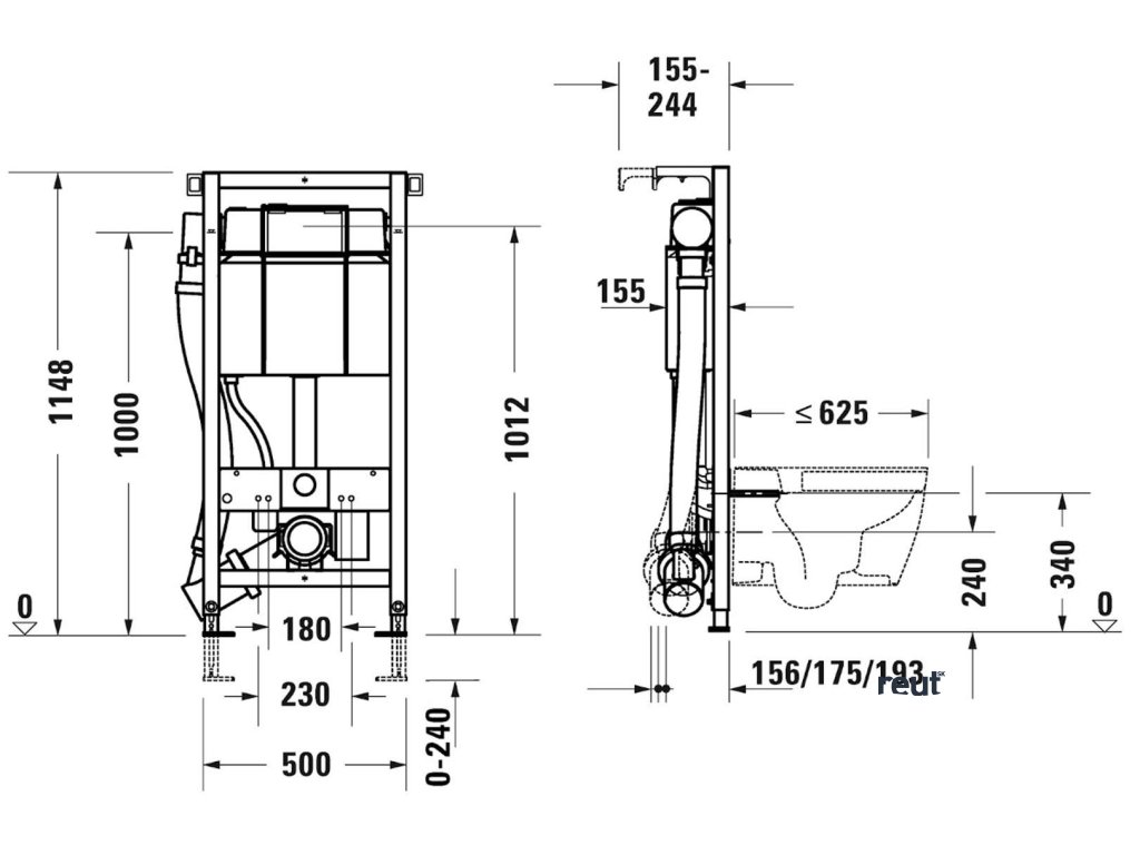 Duravit DuraSystem Predstenová inštalácia na závesné WC, 115 cm, odsávanie zápachu, hygienické splachovanie WD1014000000