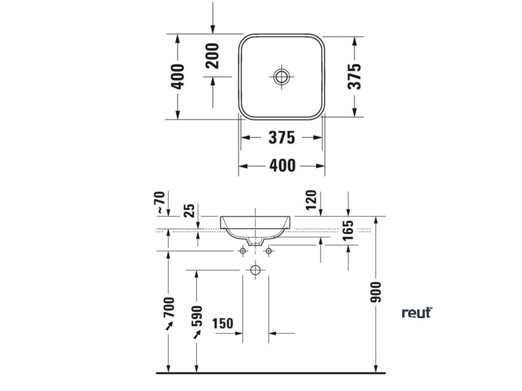 Duravit Happy D.2 Plus Umývadlová misa zápustná, 400x400 mm, bez prepadu, biela/antracit mat 2359406100