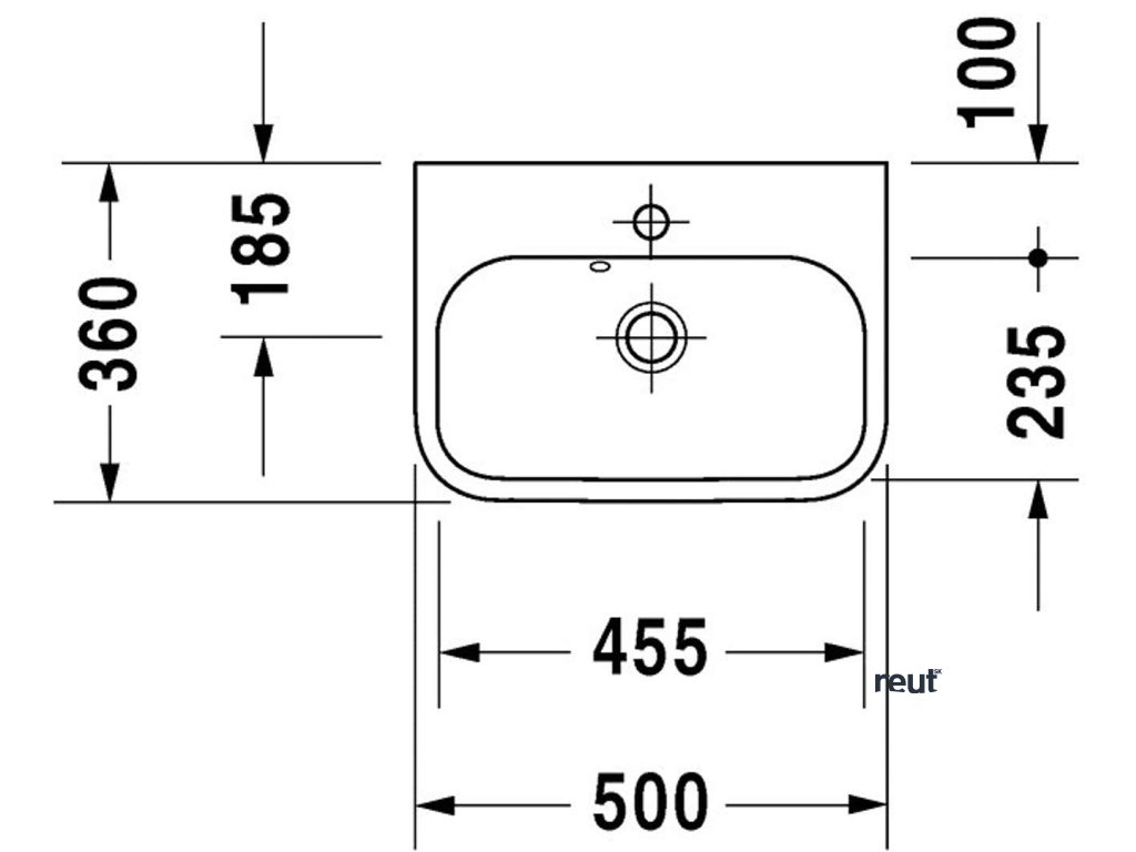Duravit Happy D.2 Umývadielko, 50x36 cm, s prepadom, s otvorom na batériu, biela 0710500000