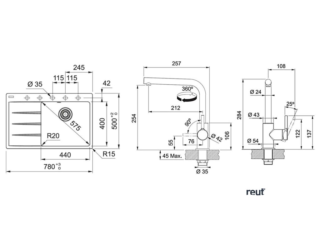 Franke Sety Kuchynský set G250MČ, fragranitový drez CNG 611-78 TL/7 a batéria FS 3230.031, matná čierna/chróm 114.0700.684