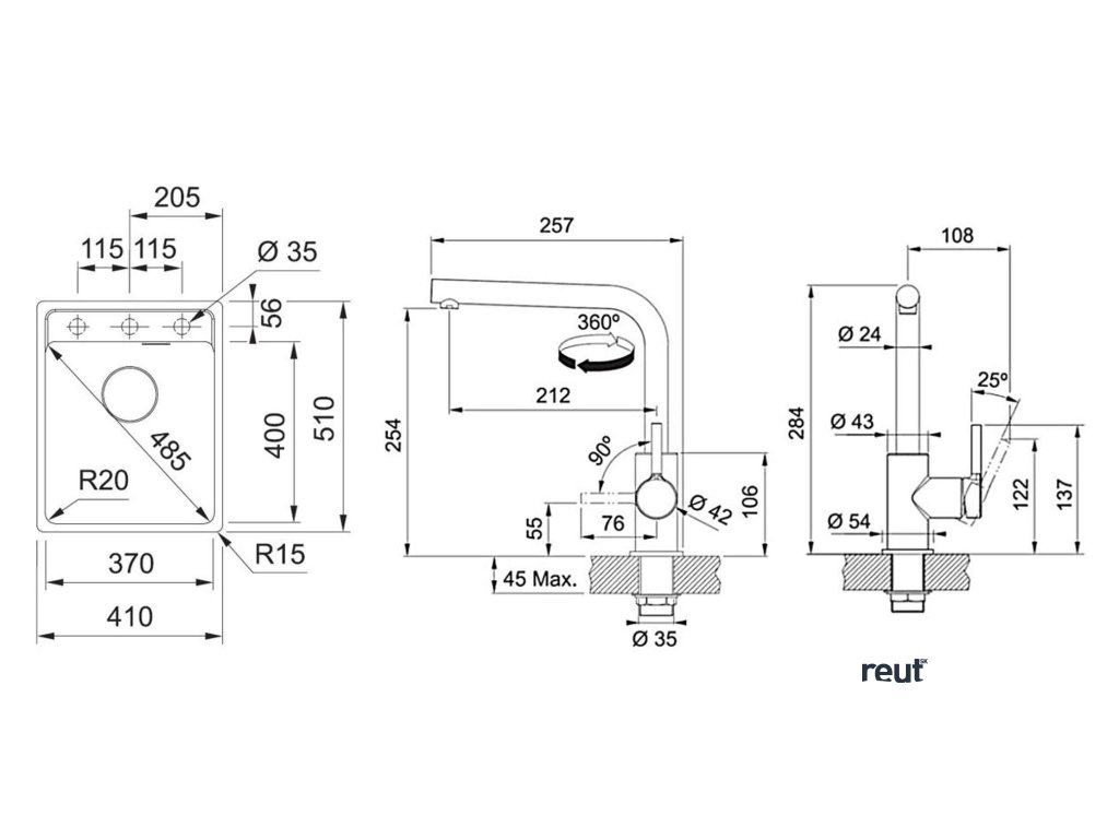 Franke Sety Kuchynský set G253ŠK, fragranitový drez MRG 610-37 RTL a batéria FS 3230.031, sivý kameň/chróm 114.0700.700