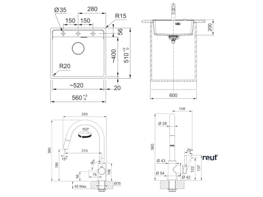 Franke Sety Kuchynský set G254ŠB, fragranitový drez MRG 610-52 RTL a batéria FS 3229.031, šedá bridlica/chróm 114.0720.181
