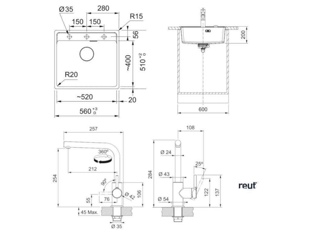 Franke Sety Kuchynský set G255ŠB, fragranitový drez MRG 610-52 RTL a batéria FS 3230.031, šedá bridlica/chróm 114.0720.182