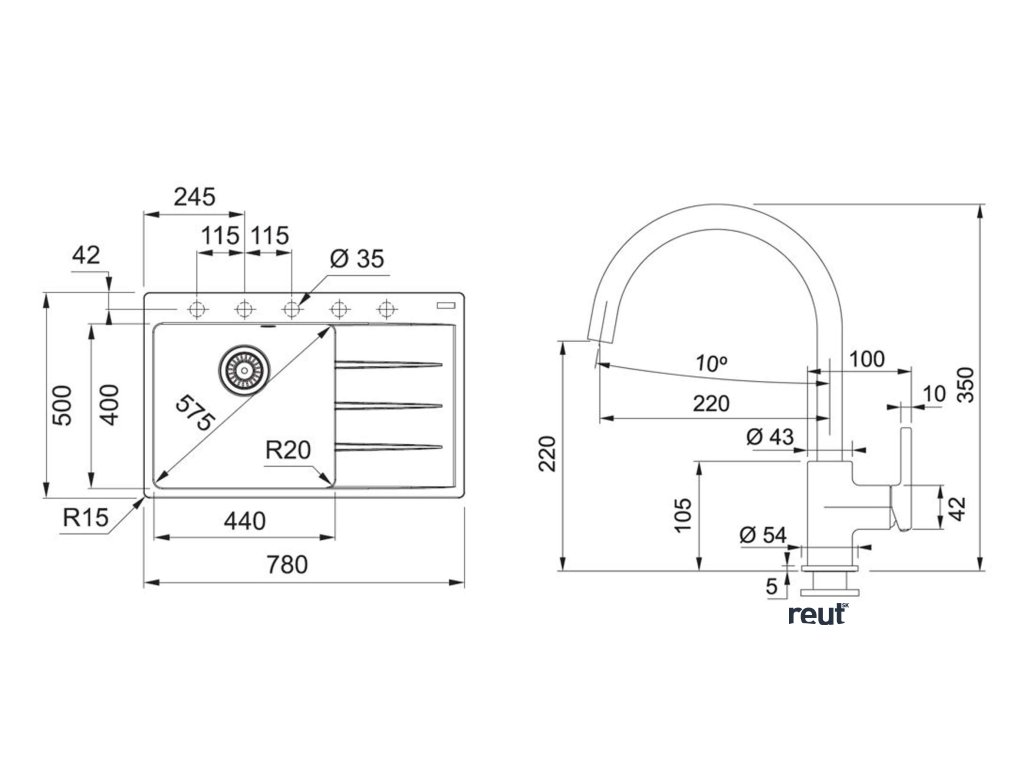 Franke Sety Kuchynský set G272ŠK, fragranitový drez CNG 611-78 TL/2 a batéria FC 6018.084, sivý kameň 114.0700.780
