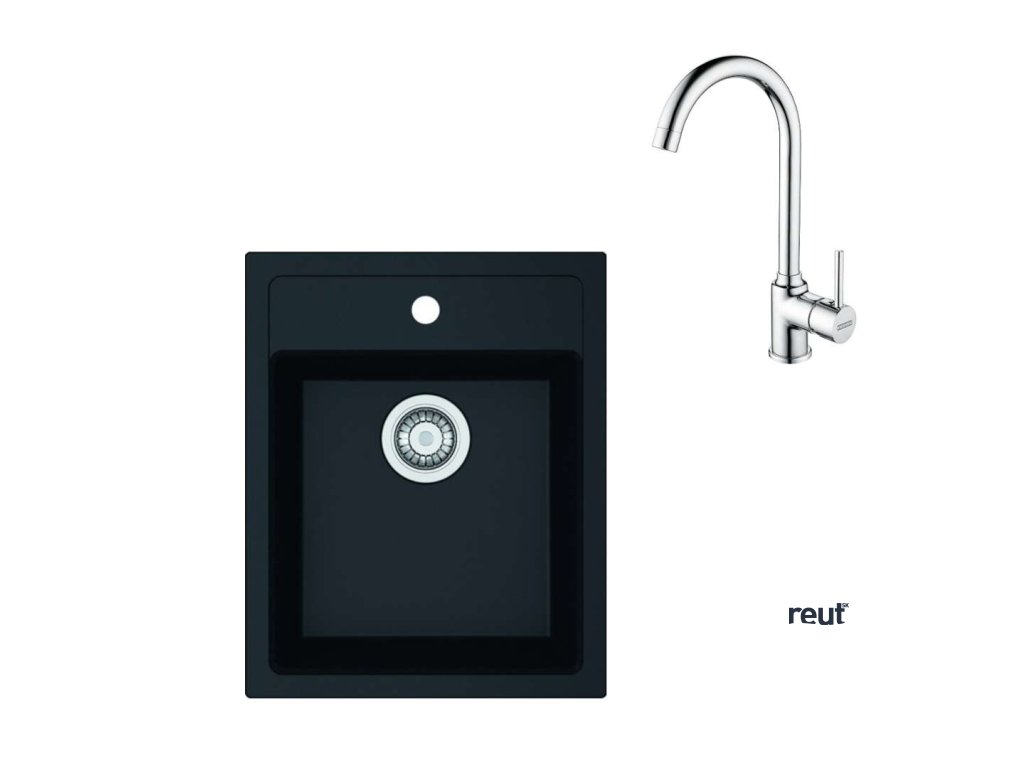 Franke Sety Kuchynský set T100, tectonitový drez SID 610-40 a batéria FP 9000.031, čierna/chróm 143.0675.704