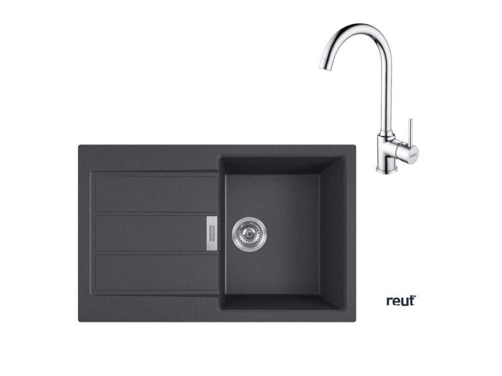 Franke Sety Kuchynský set T104, tectonitový drez S2D 611-78 a batéria FP 9000.031, čierna/chróm 143.0675.726