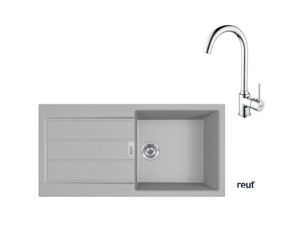 Franke Sety Kuchynský set T108, tectonitový drez S2D 611-100 a batéria FP 9000.31, sivá/chróm 143.0675.738