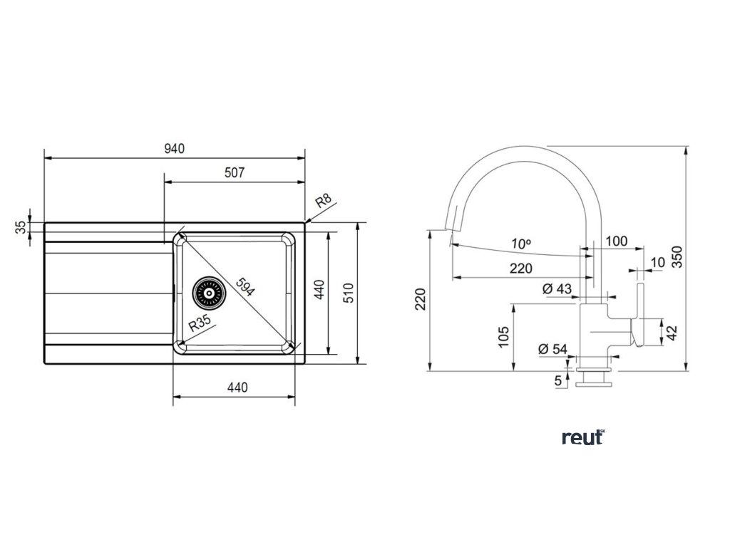 Franke Sety Kuchynský set T120Š, tectonitový drez OID 611 a batéria FC 6018.084, sivá/sivý kameň 143.0687.379