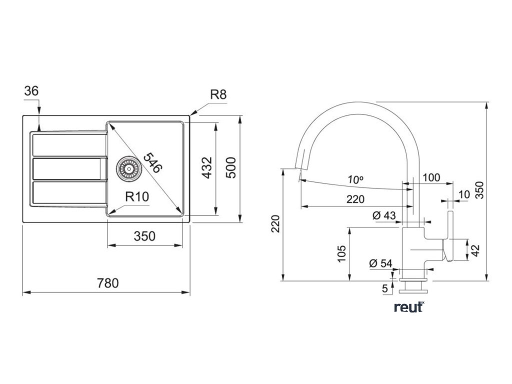 Franke Sety Kuchynský set T123Č, tectonitový drez S2D 611-78 a batéria FC 6018.901, čierna/matná čierna 143.0687.352