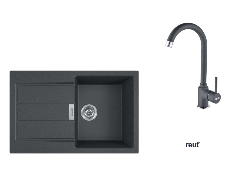 Franke Sety Set T84, tectonitový drez S2D 611-78, čierna + batéria FP 9000.071, ónyx NEW 143.0618.726