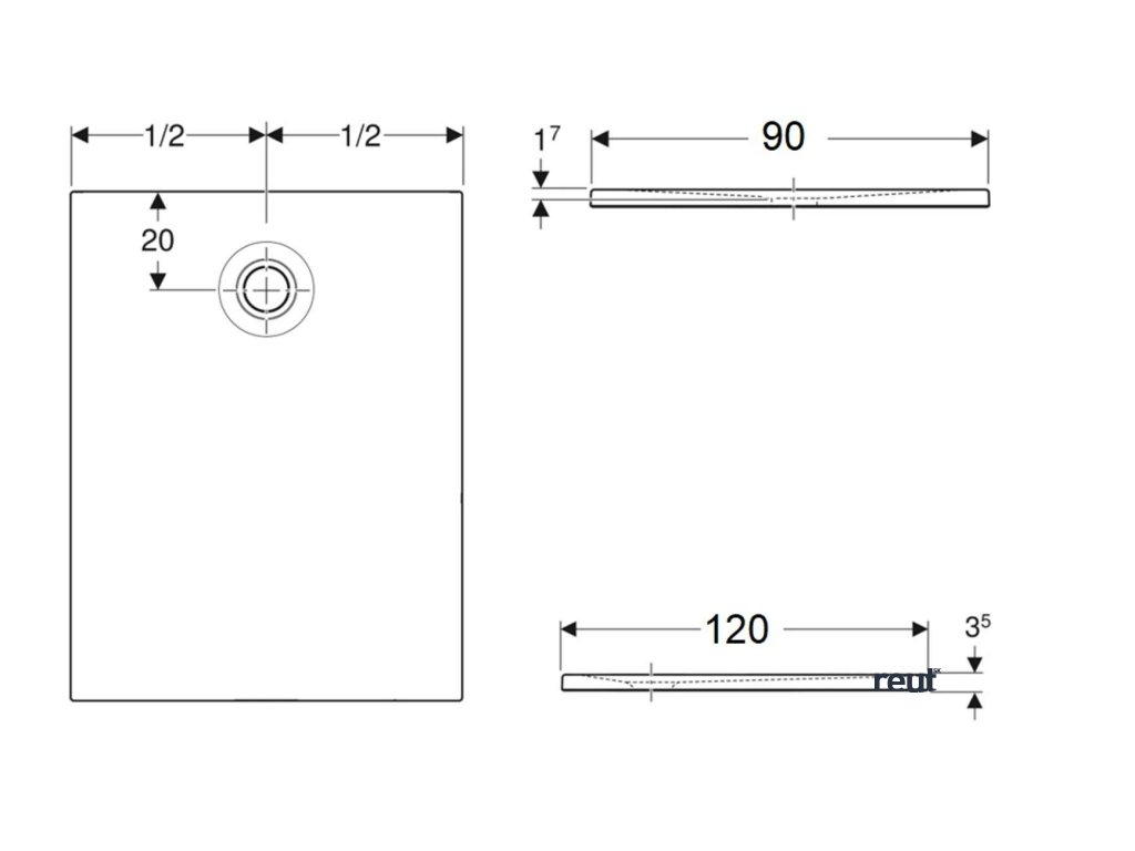 Geberit Sprchová vanička 90x120 cm, biela 550.327.00.1
