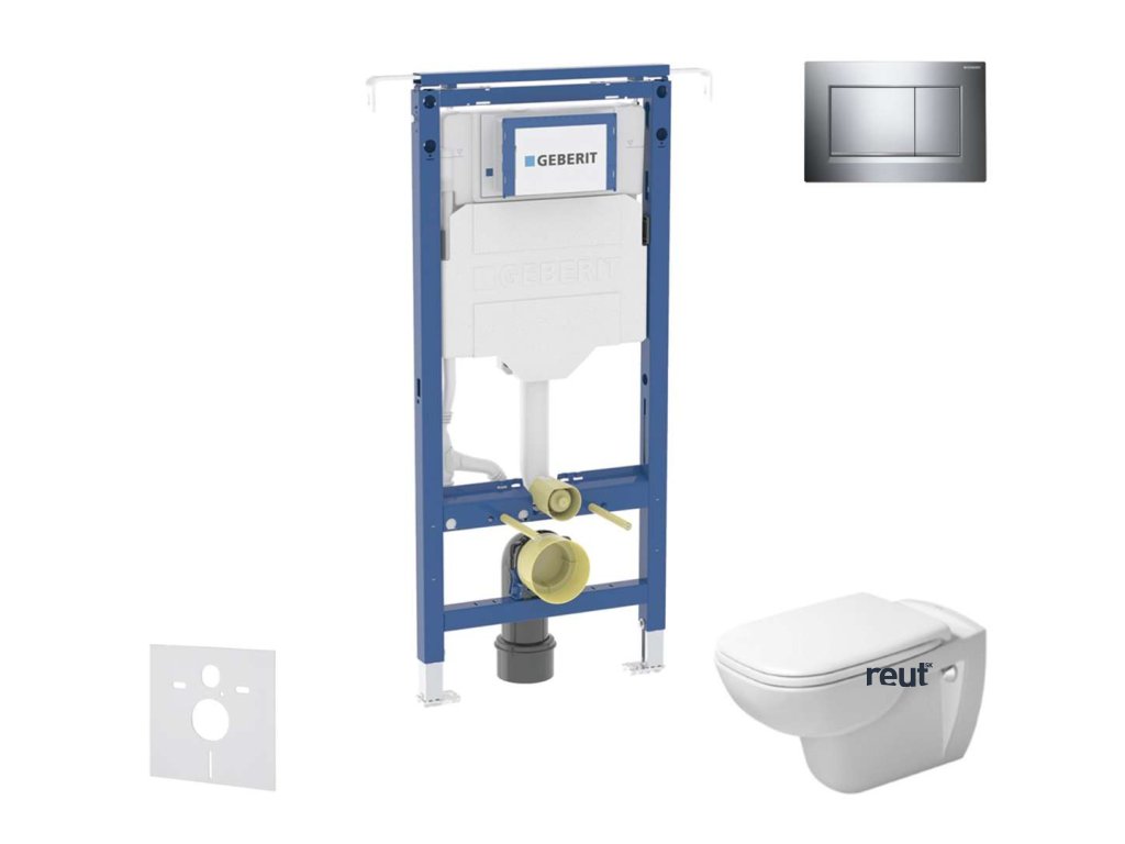 Geberit Duofix Set predstenovej inštalácie, klozetu a d Duravit D-Code, tlačidla Sigma30, Rimless, SoftClose, lesklý chróm/chróm mat SANI11CP1102