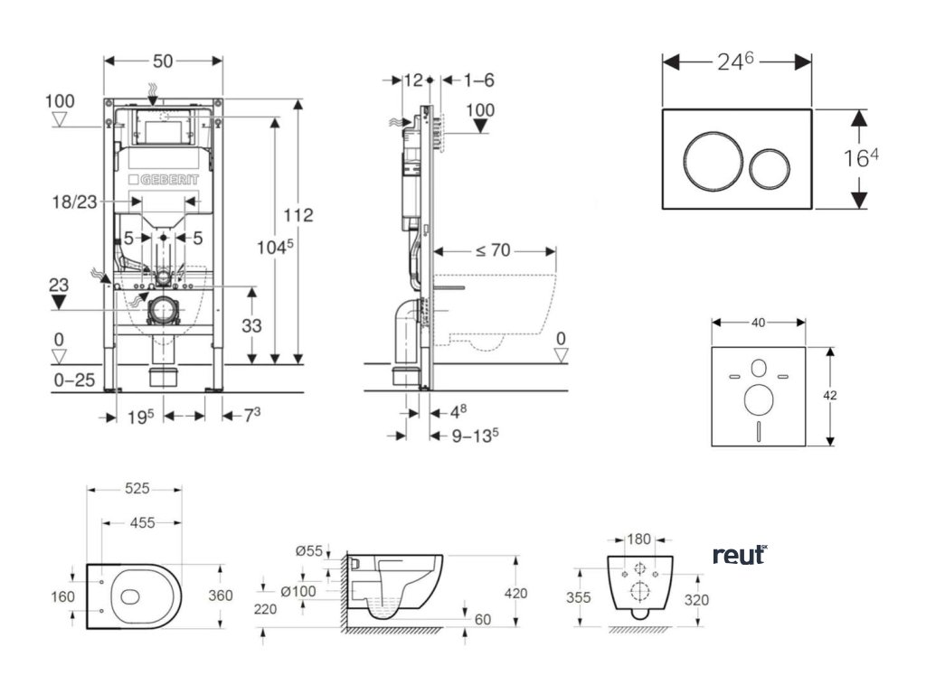 Geberit Duofix Set predstenovej inštalácie, klozetu Oudee Vortex a dosky softclose, tlačidlo Sigma20, nerezová SANI11CA6108B