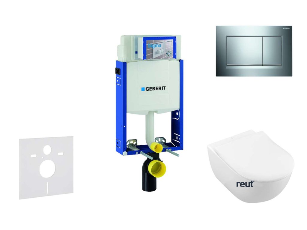 Geberit Kombifix Modul na závesné WC s tlačidlom Sigma30, lesklý chróm/chróm mat + Villeroy Boch - WC a doska, DirectFlush, SoftClose, CeramicPlus 110.302.00.5 NI6