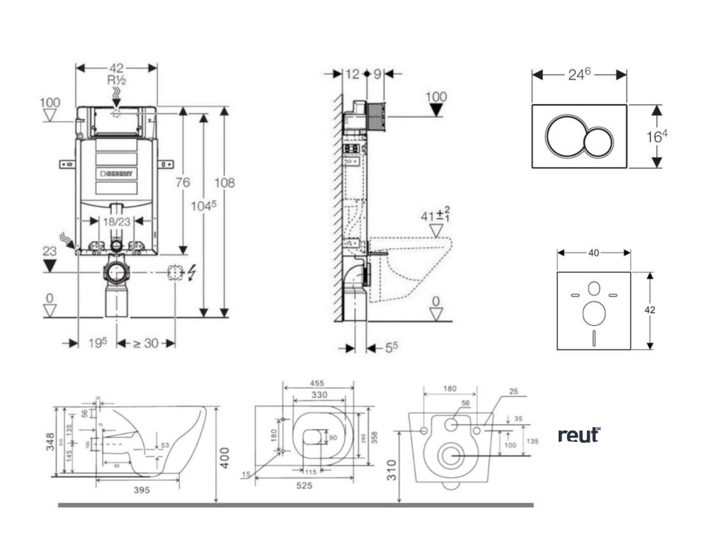 Geberit Kombifix Set predstenovej inštalácie, klozetu Gaia a dosky softclose, tlačidlo Sigma01, čierna SANI15CA5117