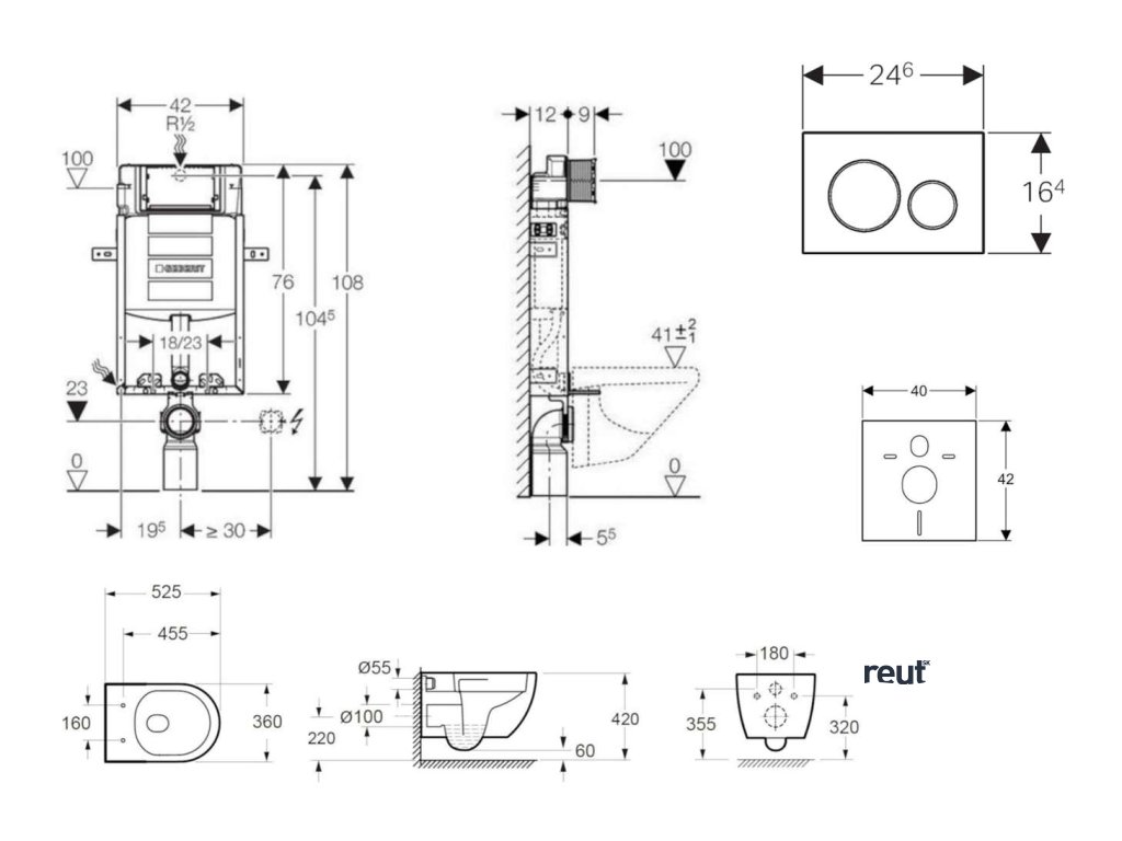 Geberit Kombifix Set predstenovej inštalácie, klozetu Oudee Vortex a dosky softclose, tlačidlo Sigma30, chróm SANI15CA1135