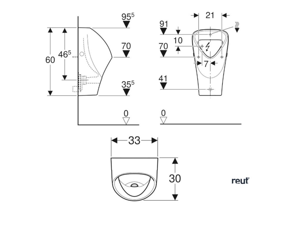 Geberit Selnova Pisoár Trigonal, prívod zozadu, biela 501.666.00.1