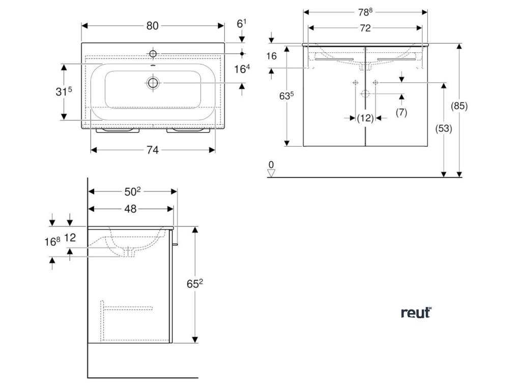 Geberit Selnova Square Umývadlová skrinka 64x79x48 cm, s umývadlom, 2 dvierka, orech hickory 501.258.00.1