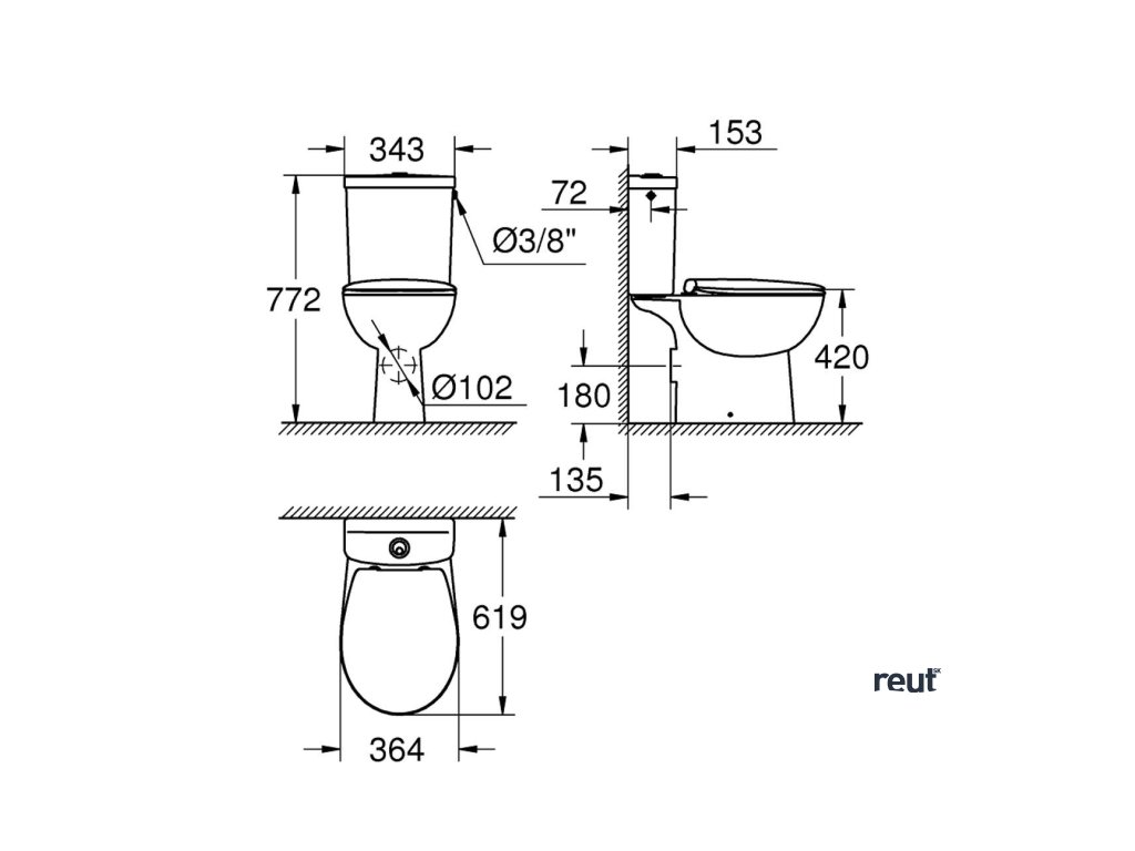 Grohe Bau Ceramic WC kombi set s nádržkou a WC doskou SoftClose, Rimless, alpská biela 39496000-GR