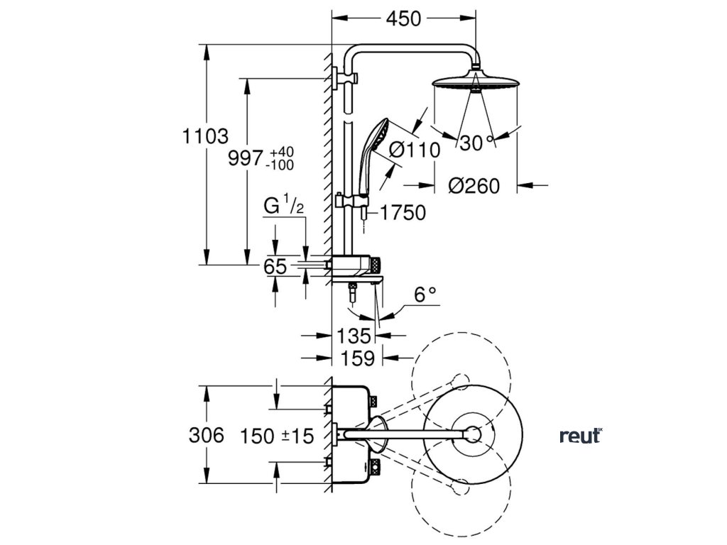 Grohe Euphoria SmartControl Sprchový set s vaňovým termostatom, priemer 26 cm, 3 prúdy, chróm 26608000-GR