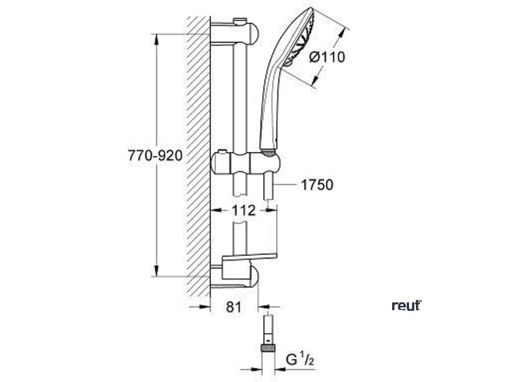 Grohe Euphoria Súprava sprchovej hlavice 110 Massage, tyče a hadice, 3 prúdy, kefovaný tmavý grafit 27226AL1-GR