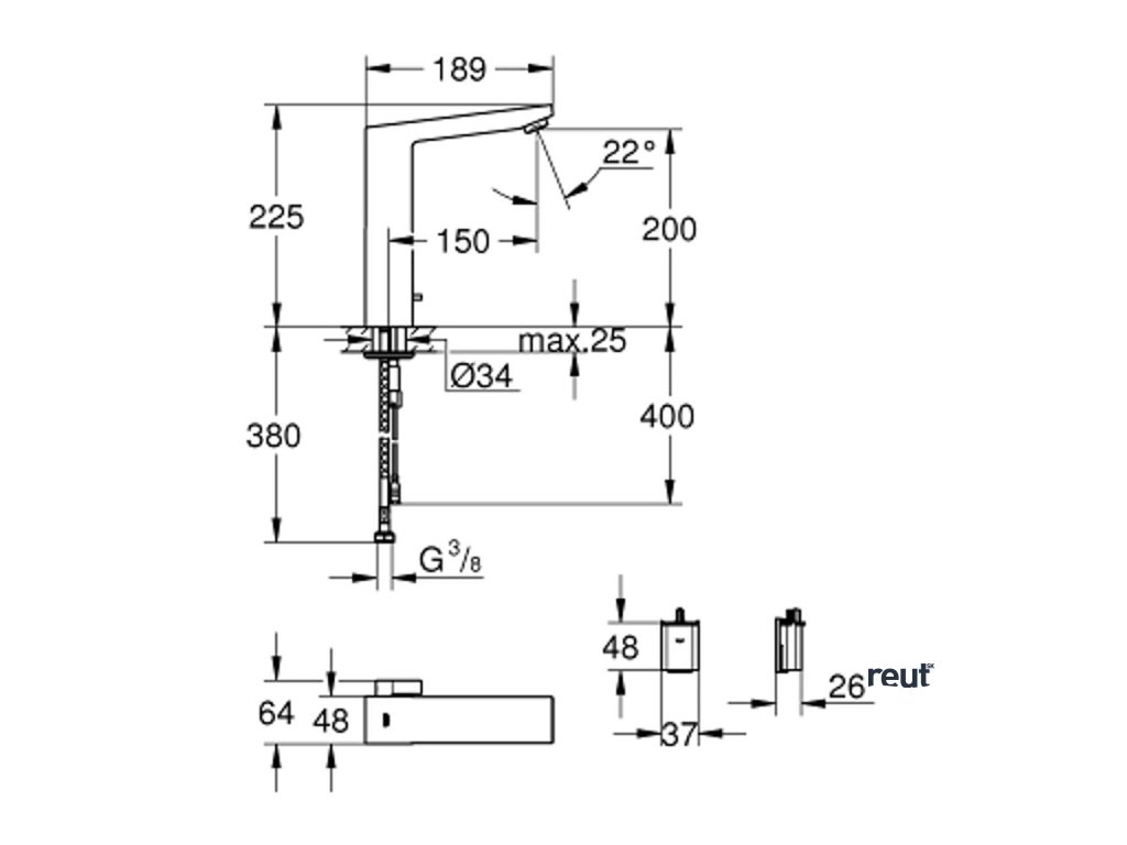 Grohe Eurocube E Infračervená elektronická umývadlová batéria so zmiešavacím zariadením a s nastaviteľným obmedzovačom teploty, chróm 36441000-GR