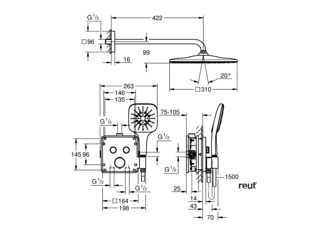 Grohe Precision SmartControl Sprchový set s termostatom pod omietku, 31x31 cm, 3 prúdy, chróm 34876000-GR