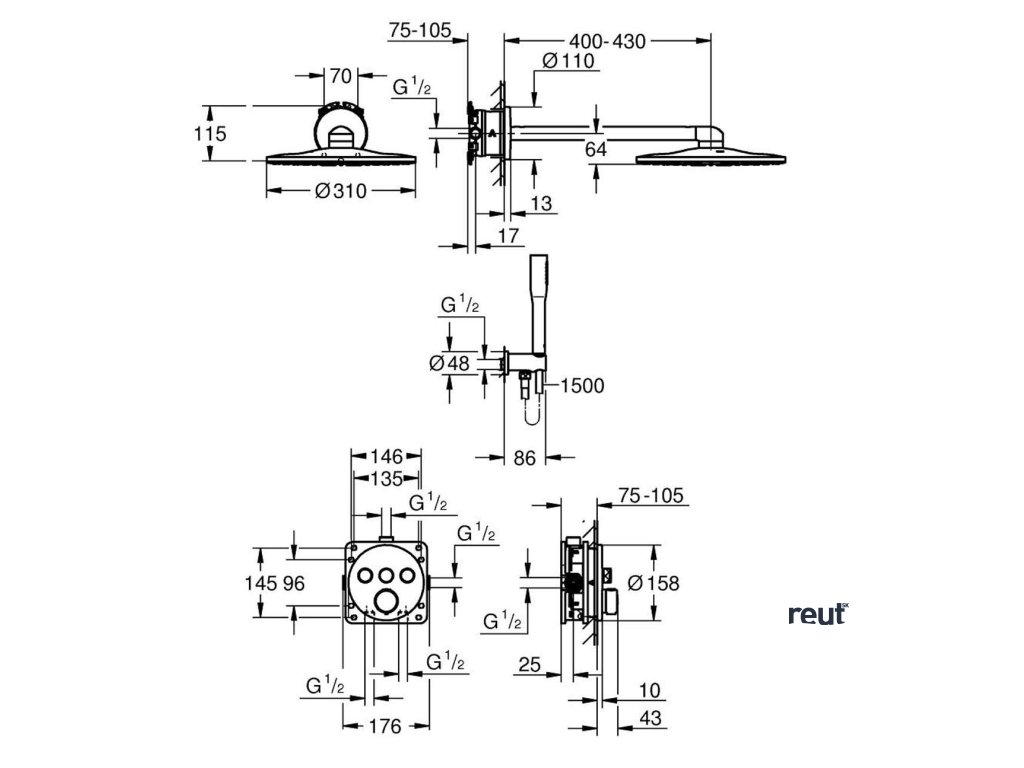 Grohe Precision SmartControl Sprchový set s termostatom pod omietku, priemer 31 cm, 2 prúdy, chróm 34874000-GR