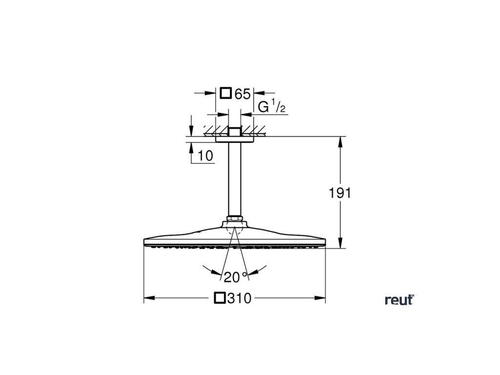 Grohe Rainshower Hlavová sprcha 310 Mono Cube 9,5 l/min, so stropným ramenom, kefovaný Hard Graphite 26566AL0-GR