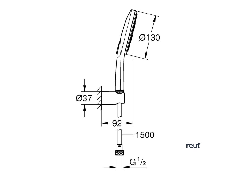 Grohe Rainshower SmartActive Súprava sprchovej hlavice 130 9,5 l/min, 3 prúdy, držiaku a hadice, mesačná biela 26581LS0-GR