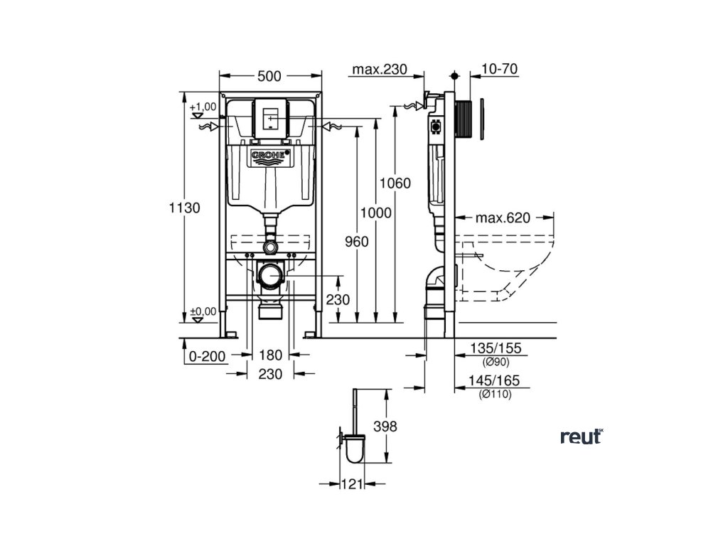 Grohe Rapid SL Predstenová inštalácia na závesné WC, nádržka GD2, tlačidlo Skate Cosmo, chróm 39000000-GR