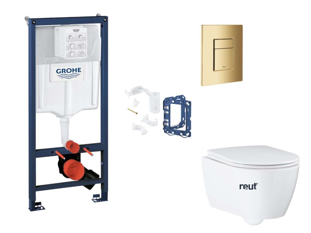 Grohe Rapid SL Set predstenovej inštalácie, klozetu, dosky SoftClose, tlačidla Skate Cosmopolitan a súpravy na vhadzovanie tabliet, Cool Sunrise SANI11BB4163-GR