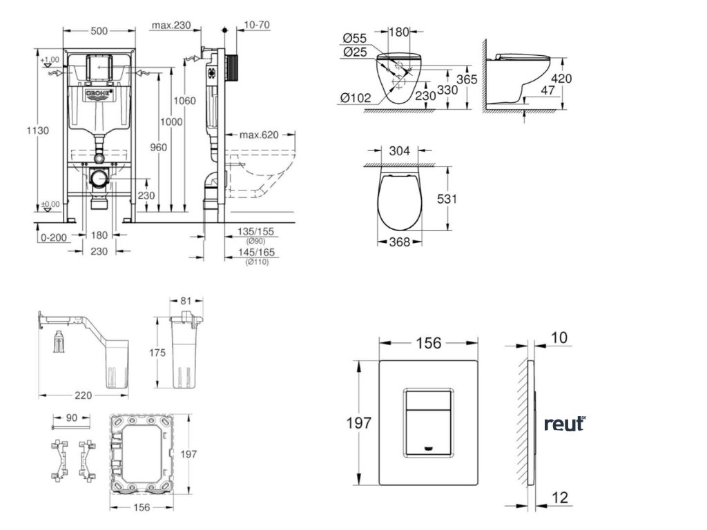 Grohe Rapid SL Set predstenovej inštalácie, klozetu, dosky SoftClose, tlačidla Skate Cosmopolitan a súpravy na vhadzovanie tabliet, kefovaný Warm Sunset SANI11BB4155-GR