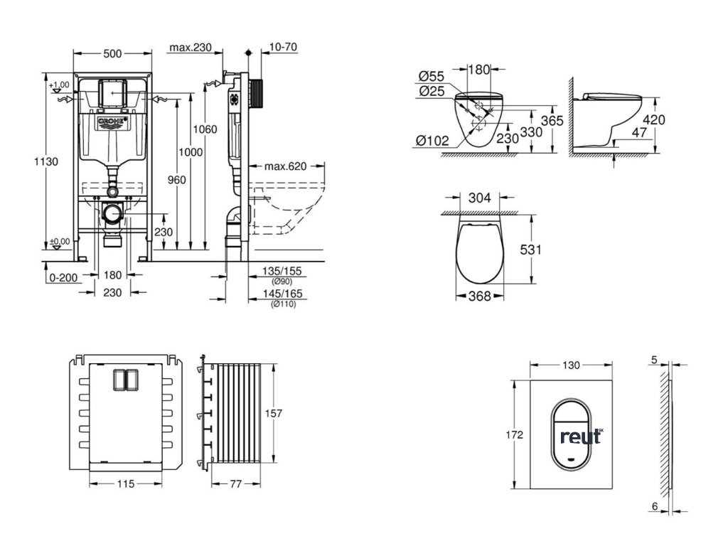 Grohe Rapid SL Set predstenovej inštalácie, klozetu, dosky SoftClose a tlačidla Arena Cosmopolitan S, Cool Sunrise SANI11BB4125-GR