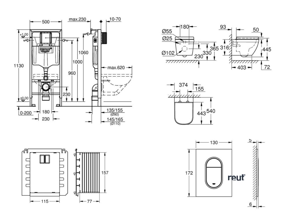 Grohe Rapid SL Set predstenovej inštalácie, klozetu, dosky SoftClose a tlačidla Arena Cosmopolitan S, Cool Sunrise SANI11BB4135-GR
