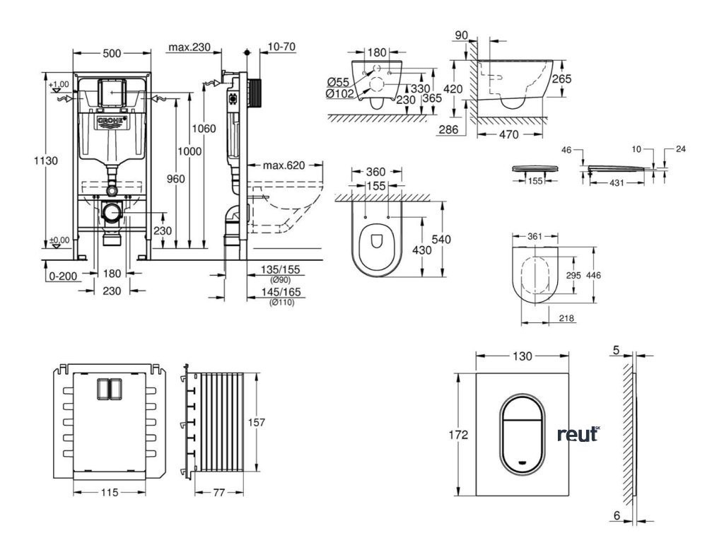 Grohe Rapid SL Set predstenovej inštalácie, klozetu, dosky SoftClose a tlačidla Arena Cosmopolitan S, kefovaný Cool Sunrise SANI11BB4139-GR