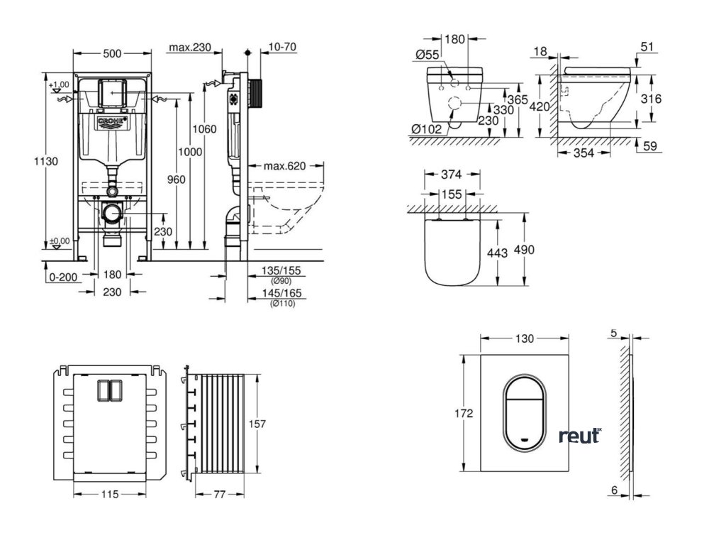 Grohe Rapid SL Set predstenovej inštalácie, klozetu, dosky SoftClose a tlačidla Arena Cosmopolitan S, Triple Vortex, Cool Sunrise SANI11BB4130-GR